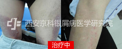 ▲病史:患者2009年年初确诊患上银屑病,曾有过药物治疗史,无效,导致病情加重,经人介绍,来到我院进行治疗。
